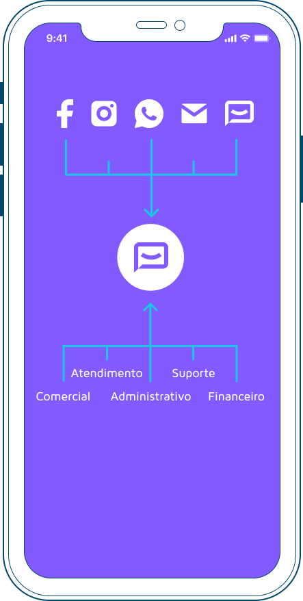 Conecte todos seus canais de atendimento ao cliente em um único lugar, distribua os atendimentos por setores e áreas responsáveis com respostas automáticas